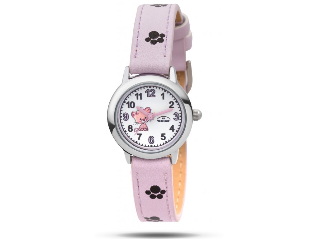Dětské hodinky Bentime 001-9BB-5067R ve fialové barvě s koženým řemínkem.