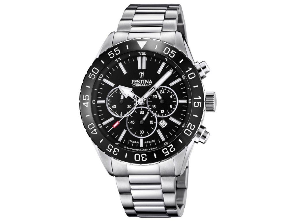 Takový doplněk se hodí ke každému outfitu bez ohledu na barvu obleku, košile nebo bot. Sportovní hodinky z kolekce Ceramic nabízejí propracovaný černý displej, který kontrastně doplňuje stříbrná barva jejich detailů a řemínku. Kloubový řemínek je kovový a hladký na dotek, což zajišťuje pohodlné nošení.