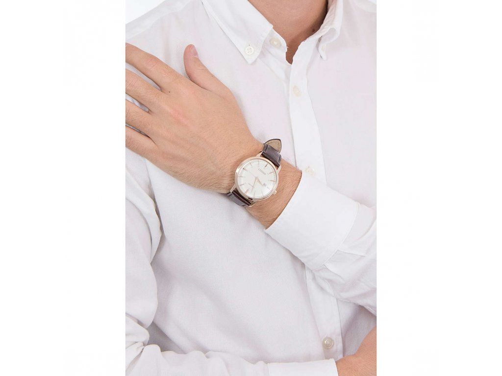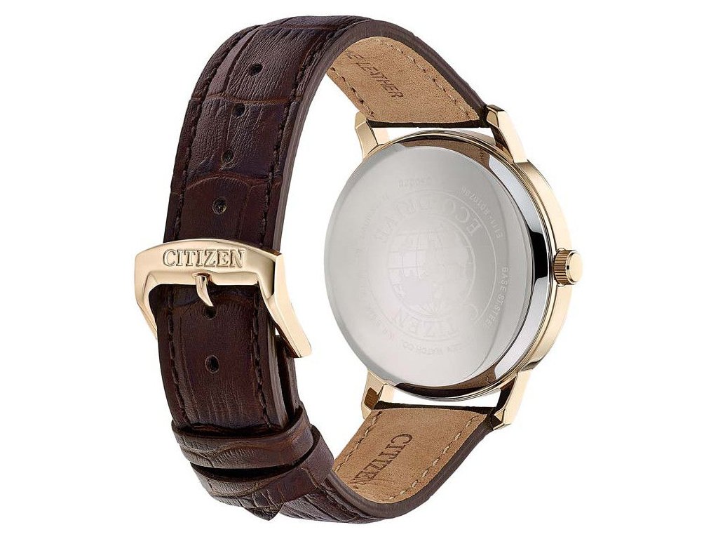 Doplňte svůj vzhled originálním kouskem od značky Citizen. Pánské hodinky Citizen BM7463-12A s koženým řemínkem představují sofistikovanou eleganci, kterou si už na první pohled zamilujete. Zlatá obruba hodinek skrývá minimalistický displej. Číselný ciferník je u tohoto modelu nahrazen lineárními indexy, které podtrhují celkový estetický vzhled. Díky své decentnosti jsou tyto pánské hodinky velmi univerzální – vhodné pro formální i neformální příležitosti. Kožený řemínek tmavě hnědé zajišťuje pohodlné nošení hodinek po celý den. Řemínek lze nastavit na Vámi požadovanou délku.