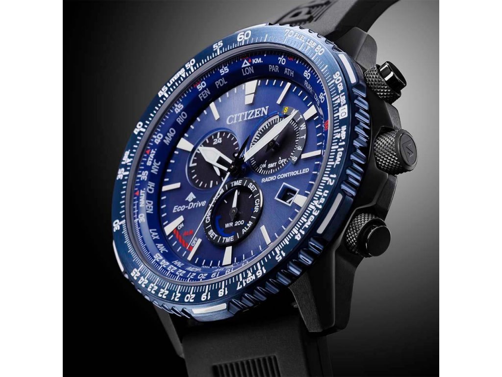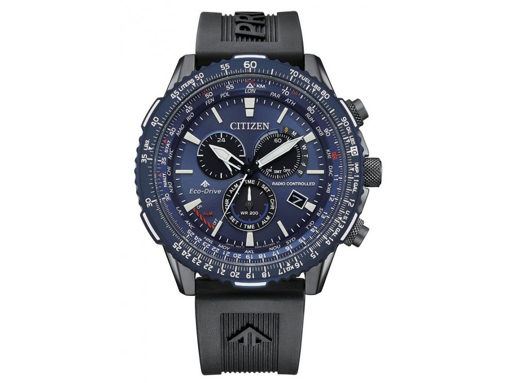 Výrazné hodinky pro úspěšného muže. Představujeme vám pánské hodinky Citizen CB5006-02L z modelové řady Promaster Sky. Hodinky jsou vyrobeny z kvalitní oceli, díky které jsou pevné, trvanlivé a spolu se safírovým sklíčkem je chrání před poškozením. Safírové sklíčko má také antireflexní vrstvu. Detailní luneta hodinek je obousměrná otočná, logaritmická. Tmavě modrý displej nabízí precizní zpracování spolu s červenými detaily. Sestává z analogového ciferníku, chronografů a a množství indexů. Ručičky i indexy jsou luminscenční.