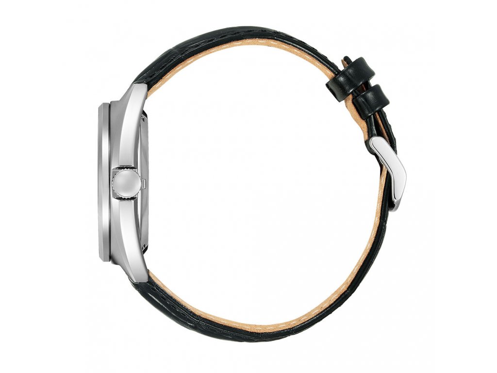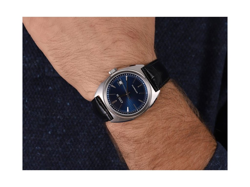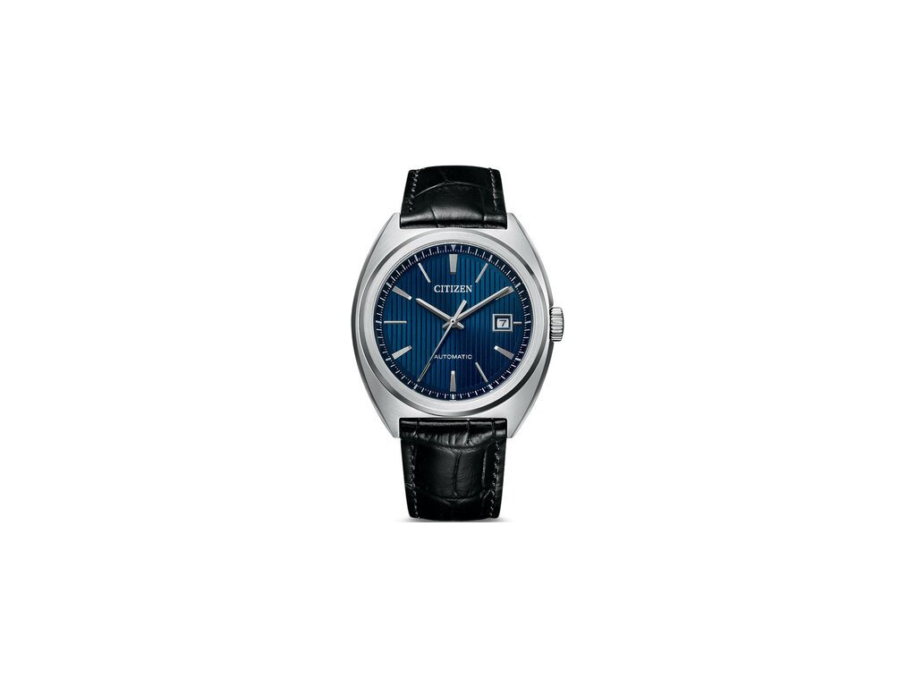 Pánské hodinky Citizen NJ0100-46L s automatickým pohonem představují originální design spolu s kvalitním zpracováním. Pevné ocelové pouzdro kontrastně doplňuje tmavý displej a řemínek. Displej tmavě modré barvy nabízí snadno čitelný ciferník, který se skládá z lineárních indexů. Hodinky disponují funkcí datum i šroubovacím děnkem. Kožený černý řemínek výborné kvality se zapíná pomocí klasické kovové přezky.
