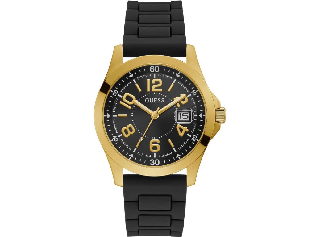 Pánské hodinky Guess GW0058G2 v černo zlaté barvě s plastovým páskem. Jednoduchý a přehledný displej s funkcí datum.
