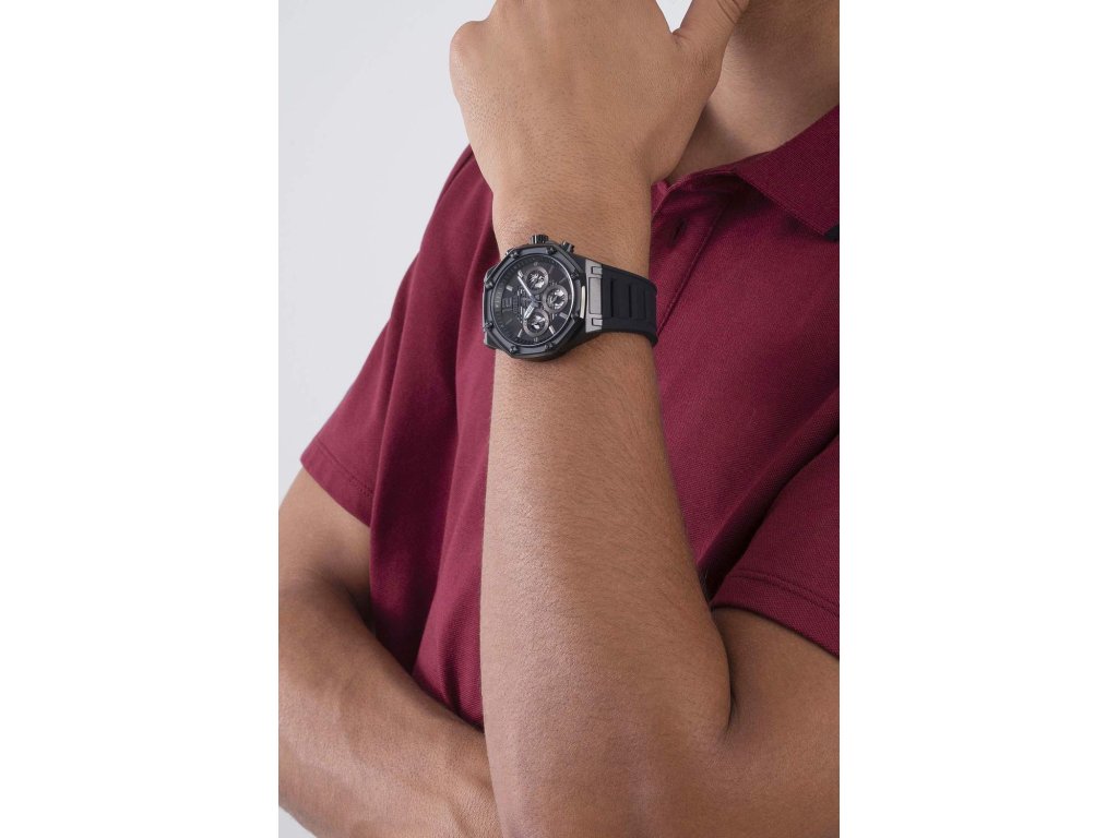 Hodinky GUESS GW0263G4 s více funkcemi na displeji. Mohutná obruba v krásných tvarech.